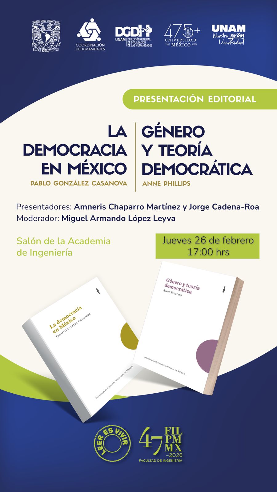 La Coordinación de Humanidades y la Dirección General de Divulgación de las Humanidades de la Universidad Nacional Autónoma de México se complacen en invitarle a la